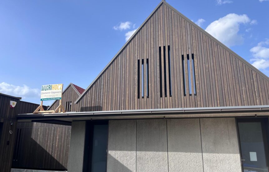 Holz ist ein lebendiges Material. Die Farbe und Oberflächenstruktur des Fassadenholzes verträgt sich mit Regen, Schnee und Sonne und verändert sich (wenn unbehandelt) dadurch im Laufe der Jahre. Das ist ein natürlicher Prozess und hat keinen Einfluss auf die Festigkeit und Qualität des Holzes.